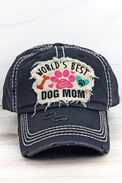 Distressed Black World’s Best Dog Mom Adjustable Hat